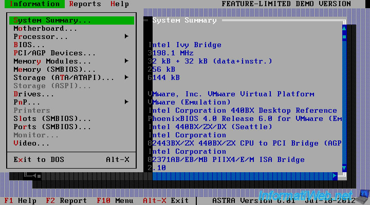 En effet, ASTRA va afficher les informations du matériel virtuel utilisé par la machine virtuelle et non le matériel réel de notre PC physique.