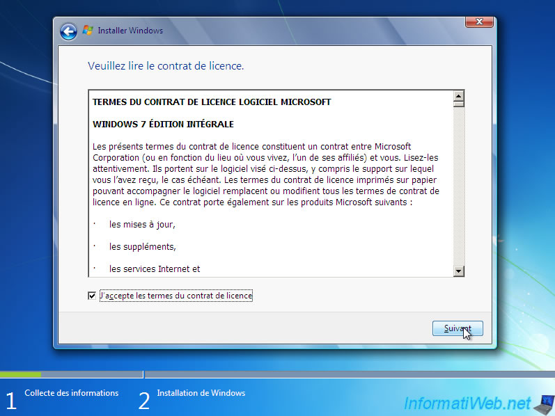 Le PC démarre sur le DVD de "Windows Seven" et la fenêtre d'installation s'affiche. Sélectionnez la langue souhaitée et cliquez sur "Suivant".