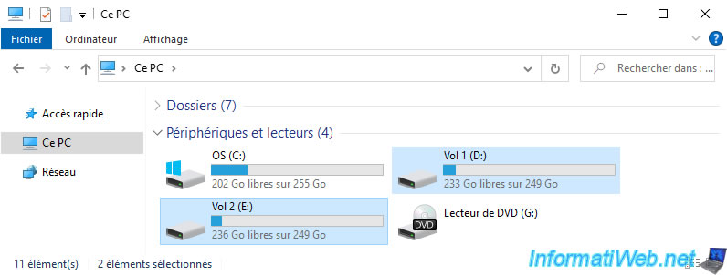 Si vous allez dans l'explorateur de fichiers, vous verrez qu'Acronis Cyber Protect Home Office (True Image) a créé autant de partitions que le nombre de partitions qui étaient présentes sur le disque source.
