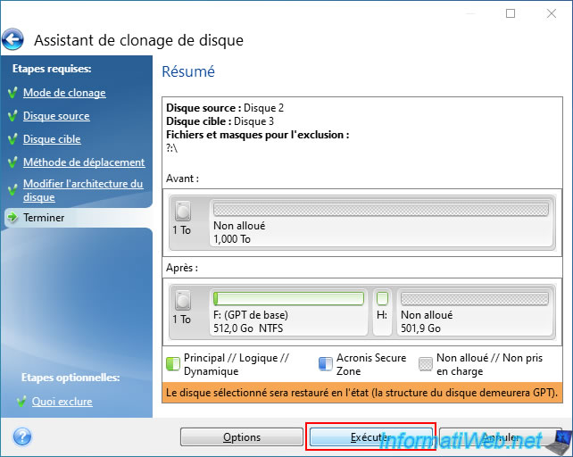 Pour exclure une partition, cliquez sur l'option optionnelle "Quoi exclure" (présente en bas à gauche).