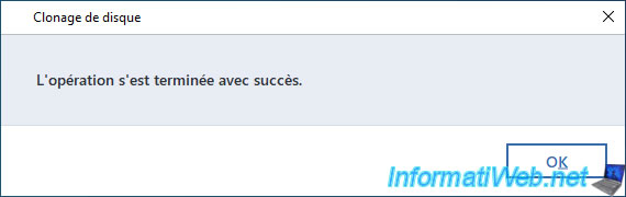 Une fois la copie terminée, le message "L'opération s'est terminée ..." apparaitra.