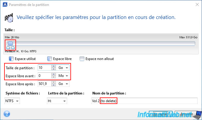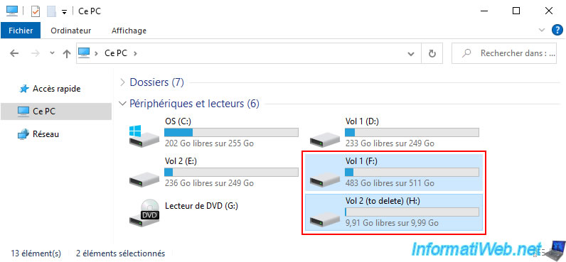 Par contre, vous pourrez remarquer que la partition "Vol 2 (to delete)" a bien une taille de 10 Go et qu'elle est quasiment vide.