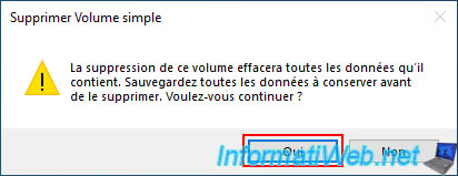 Confirmez la suppression de ce volume (partition) en cliquant sur "Oui".