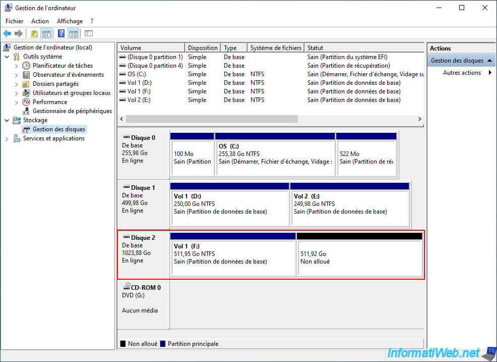 Comme vous pouvez le voir grâce à la gestion des disques de Windows :