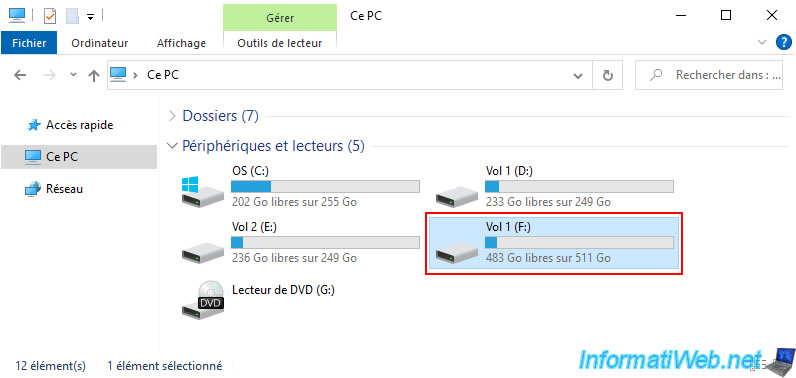 Si vous retournez dans l'explorateur de fichiers, vous retrouverez effectivement uniquement la partition dont vous avez copié le contenu via Acronis.