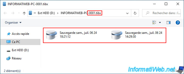 Si nous rentrons dans l'autre fichier ".tibx", nous pouvons voir qu'il reste seulement 2 sauvegardes.