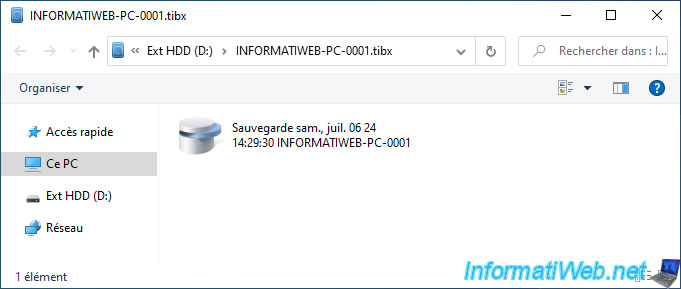 Sur votre disque dur externe, vous pourrez constater que la taille du fichier ".tibx" a diminué.