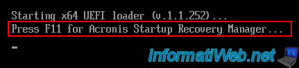 Starting x64 UEFI loader (v.1.1.252) ... Press F11 for Acronis Startup Recovery Manager...