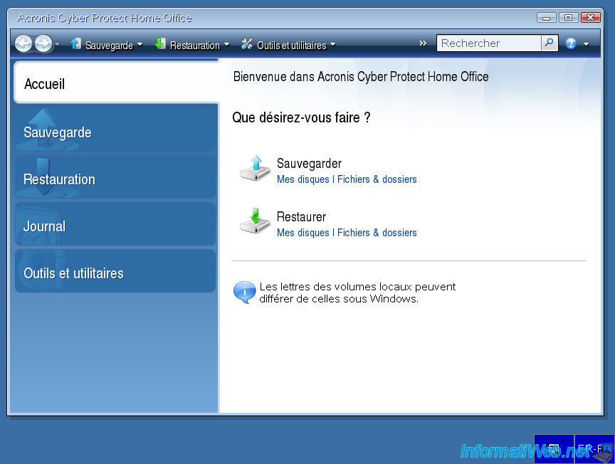 Maintenant, vous avez accès à ce programme "Acronis Cyber Protect Home Office (True Image)" depuis votre disque dur (en dehors de Windows, ce qui permet de le restaurer facilement) sans devoir retrouver d'abord votre support de secours Acronis physique.