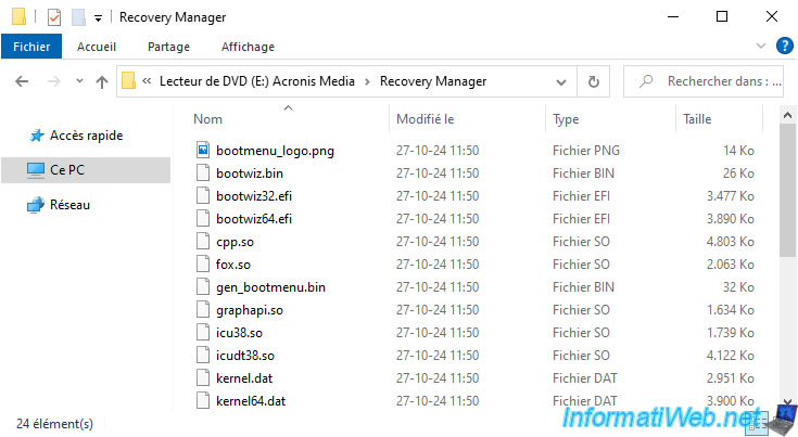 Voici le contenu du dossier "Recovery Manager" de ce support de secours Acronis basé sur Linux.
