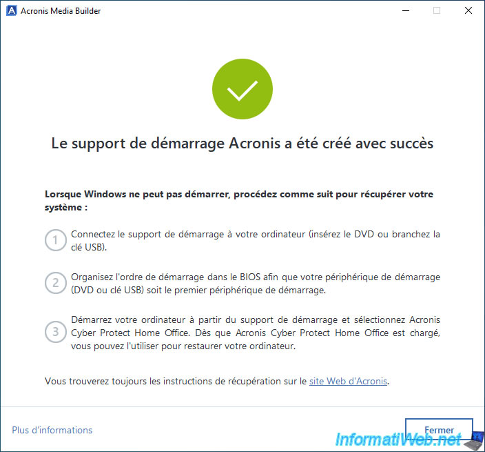 Le support de démarrage Acronis basé sur Linux a été créé.