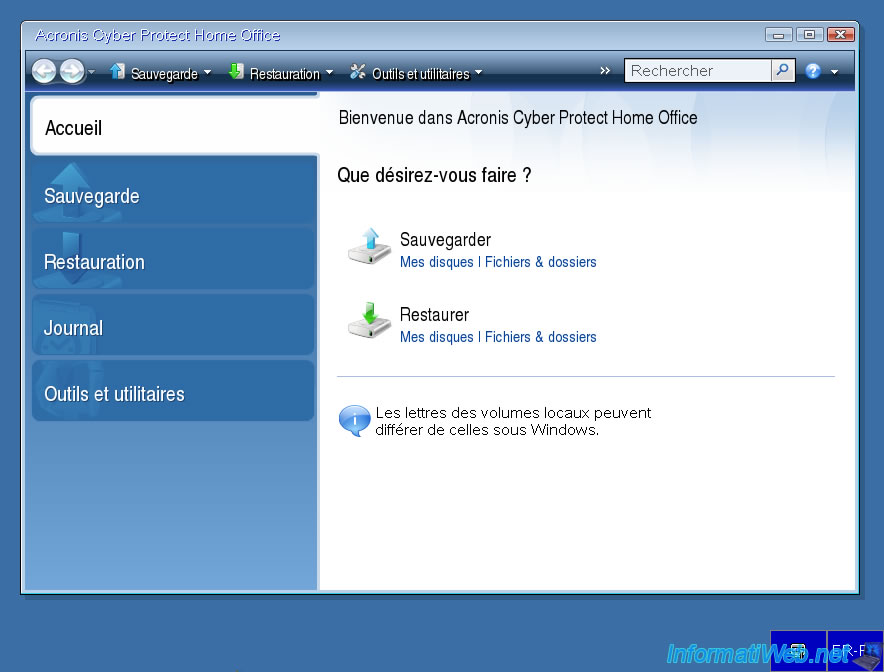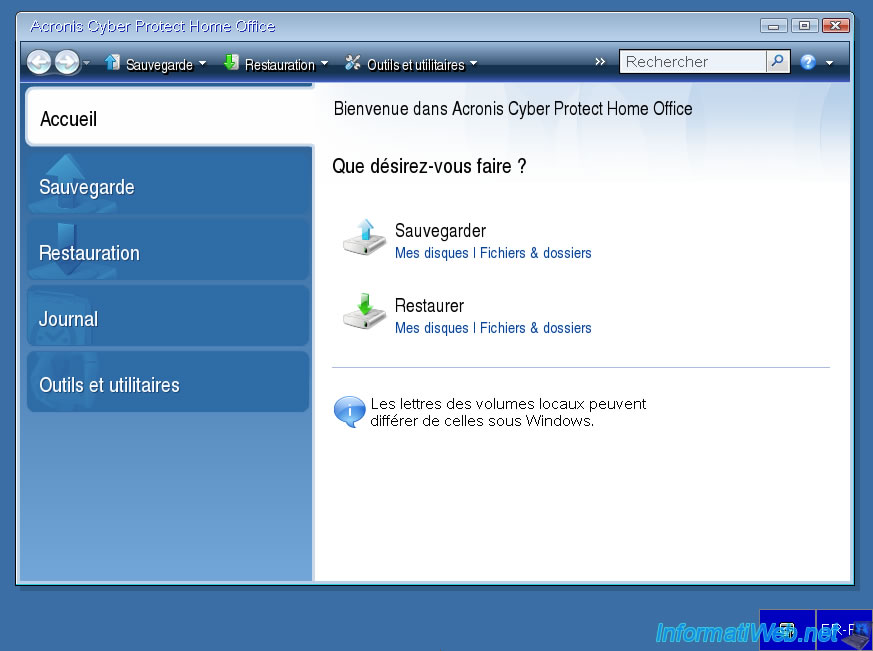 En effet, la sauvegarde depuis ce support de secours Acronis requiert une version complète d'Acronis Cyber Protect Home Office (True Image).