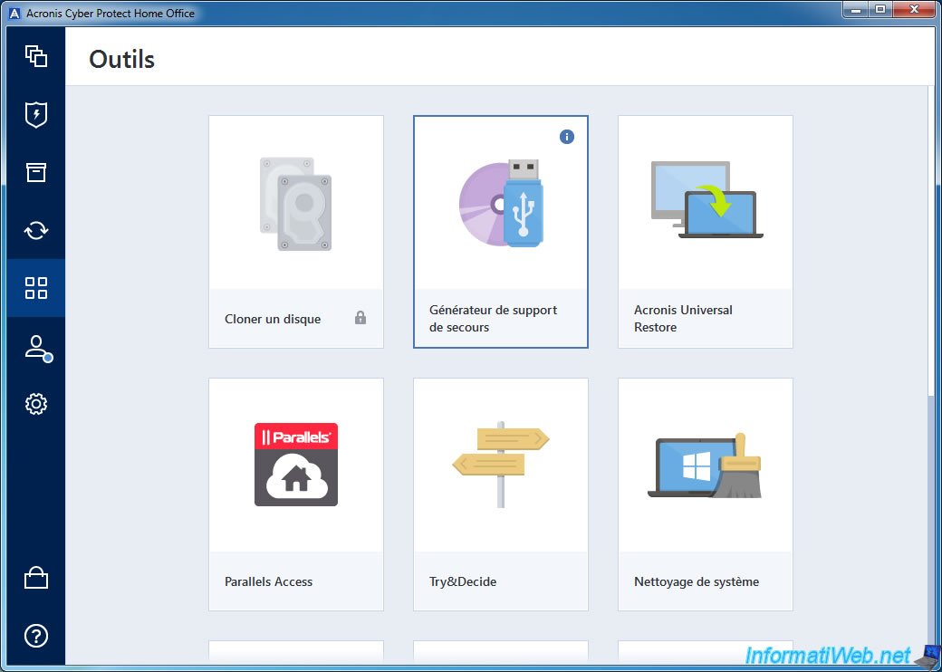 Pour commencer, allez dans la section "Outils" d'Acronis Cyber Protect Home Office (True Image) et lancez l'outil "Générateur de support de secours".