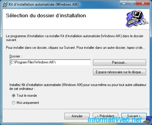 Ensuite, l'assistant Installation de Kit d'installation automatisée (Windows AIK) apparait.