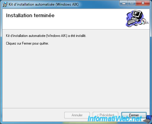 Patientez pendant l'installation du Windows AIK.