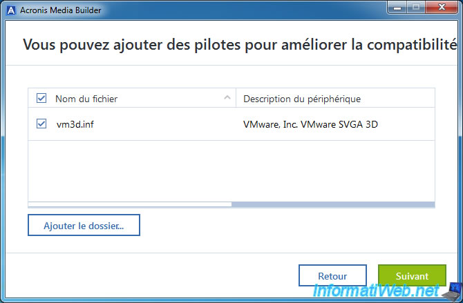 Une fois le Windows AIK installé, Acronis Media Builder passera automatiquement à l'étape suivante et vous proposera d'ajouter des pilotes dans votre futur support de secours Acronis.