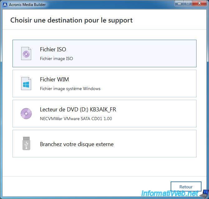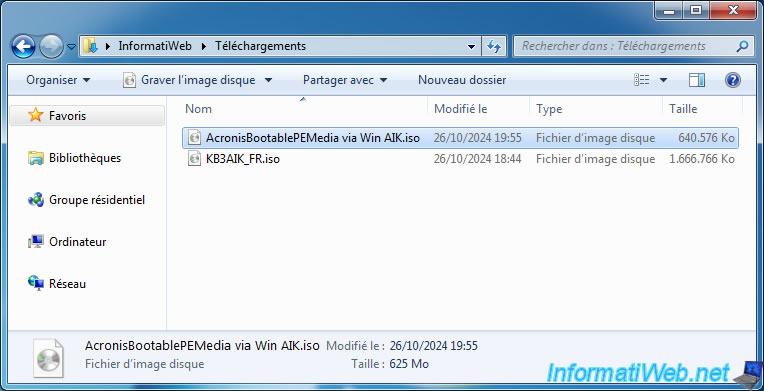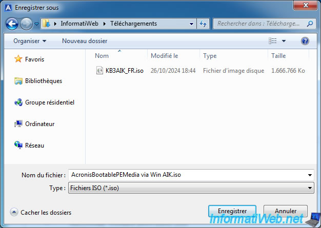 Sauvegardez le fichier sous le nom "AcronisBootablePEMedia via Win AIK.iso" (par exemple).