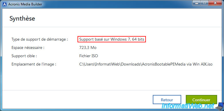 Comme vous pouvez le voir, Acronis Media Builder créera un support basé sur Windows 7 en 64 bits.