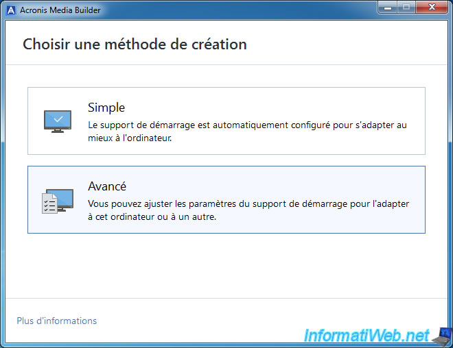 Si vous êtes sous Windows 7, vous pouvez créer un support de secours Acronis grâce au Microsoft Windows AIK via Acronis Cyber Protect Home Office (True Image).