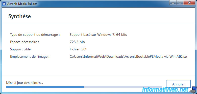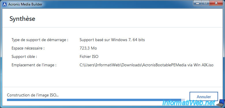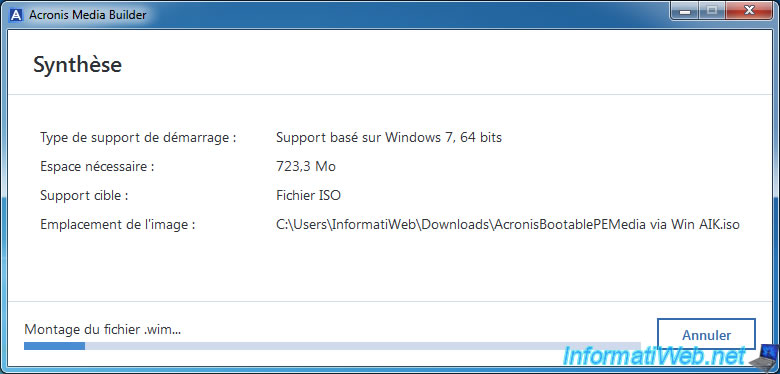 Puis, Acronis Media Builder créera un fichier ISO contenant notamment le fichier .wim modifié.