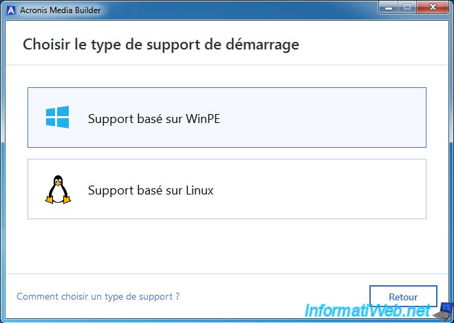 Choisissez : Support basé sur WinPE.