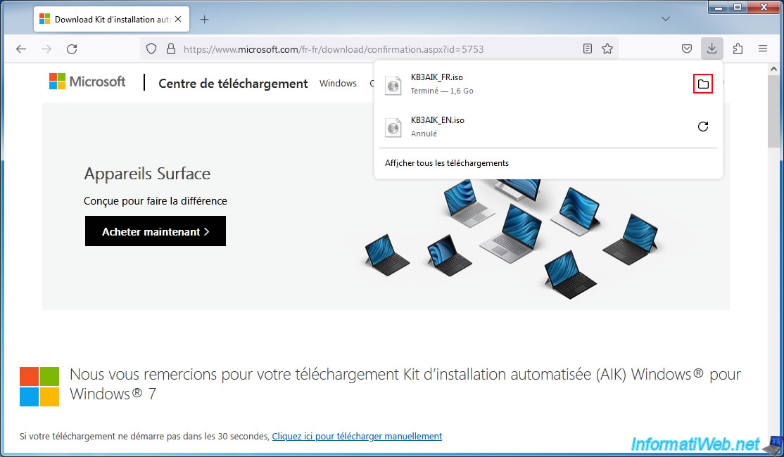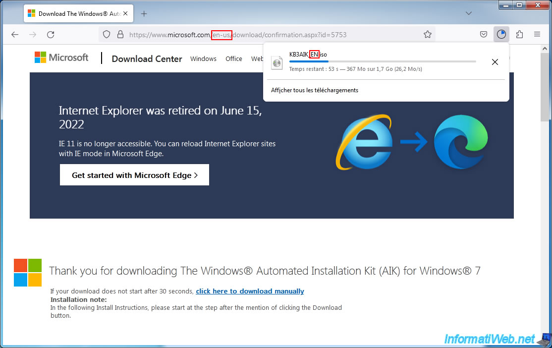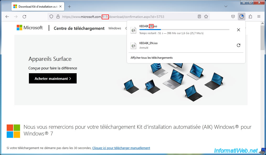 Ainsi, le fichier téléchargé sera : KB3AIK_FR.iso.