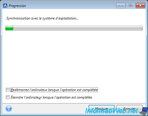 Ensuite, Acronis Cyber Protect Home Office (True Image) redimensionnera la partition sélectionnée précédemment pour pouvoir placer la partition "Acronis Secure Zone" à la fin du disque concerné par la partition sélectionnée précédemment.