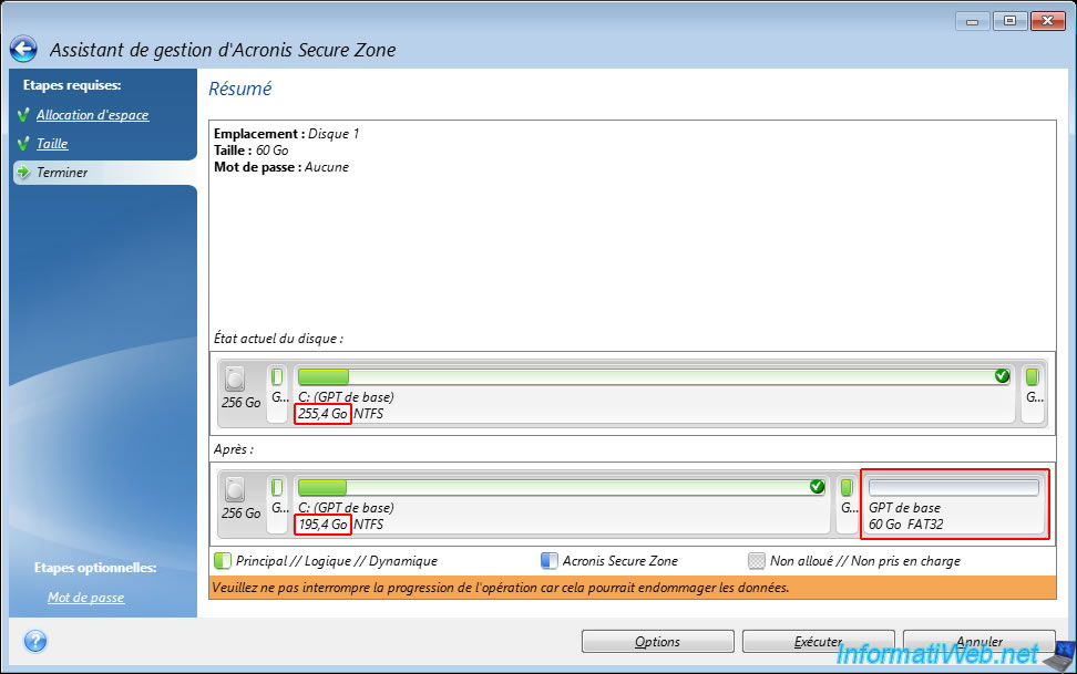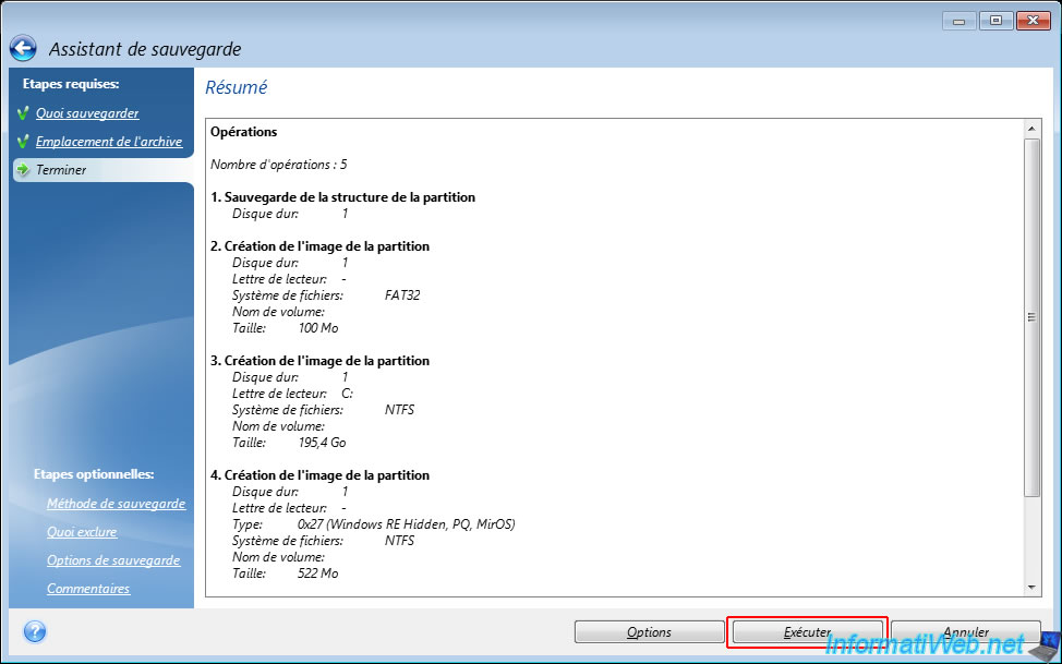 Un résumé des opérations qui seront effectuées apparait.