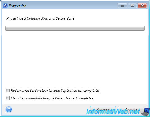 Phase 1 de 3 Création d'Acronis Secure Zone