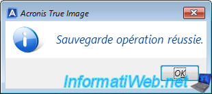 Une fois la création de cette "Acronis Secure Zone" terminée, le message "La Acronis Secure Zone a été créée avec succès" apparaitra.