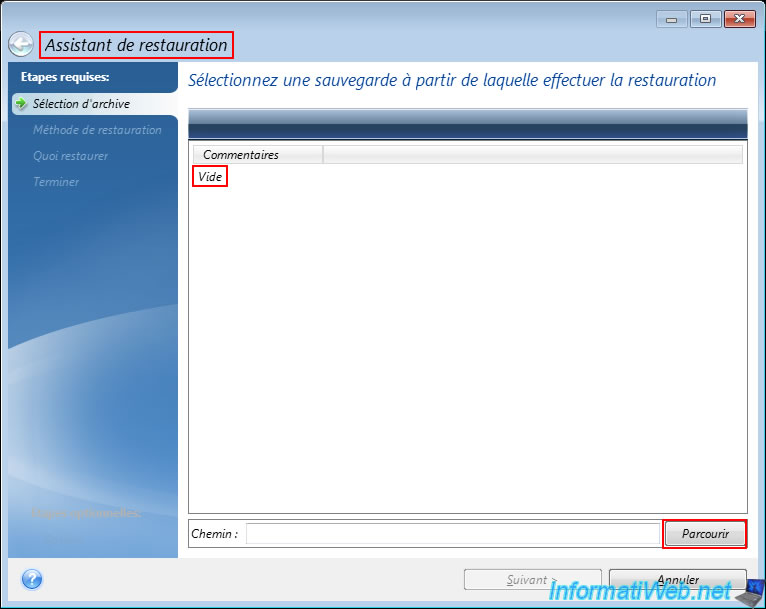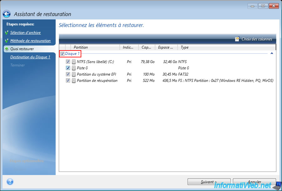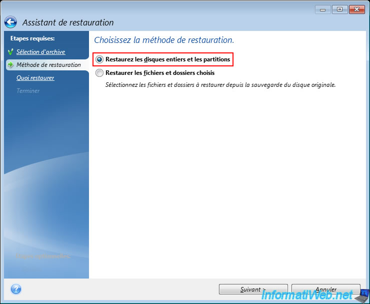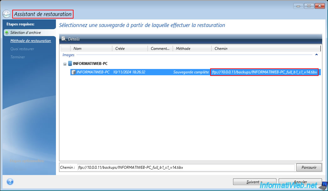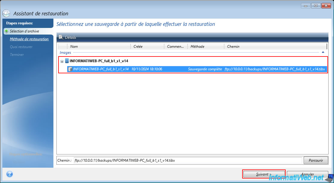 Sélectionnez cette sauvegarde et cliquez sur "Suivant".