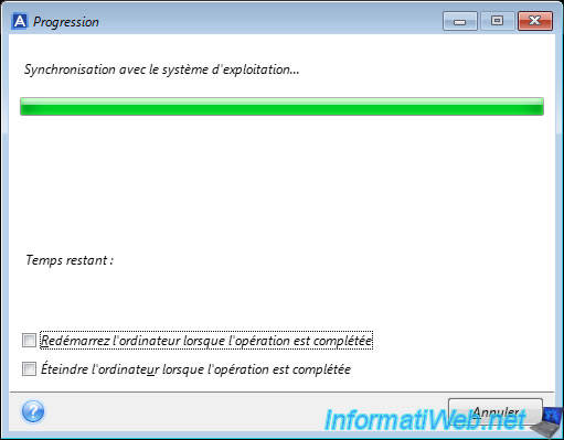 Vers la fin de la restauration, vous verrez le message "Synchronisation avec le système d'exploitation" apparaitre.