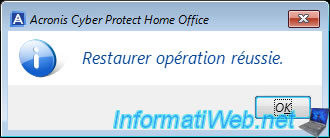 Une fois la restauration de votre ordinateur depuis la sauvegarde stockée sur votre serveur FTP terminée, le message "Restaurer opération réussie" apparaitra.