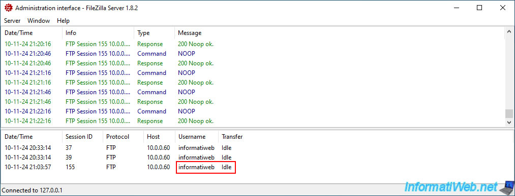 Sur votre serveur FTP, vous pourrez voir que le dernier fichier ".tibx" a effectivement été accédé.