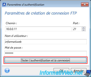 Ensuite, cliquez sur "Tester l'authentification et la connexion".