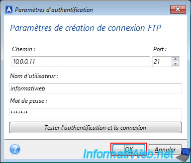 Cliquez sur OK pour sauvegarder ces paramètres FTP.