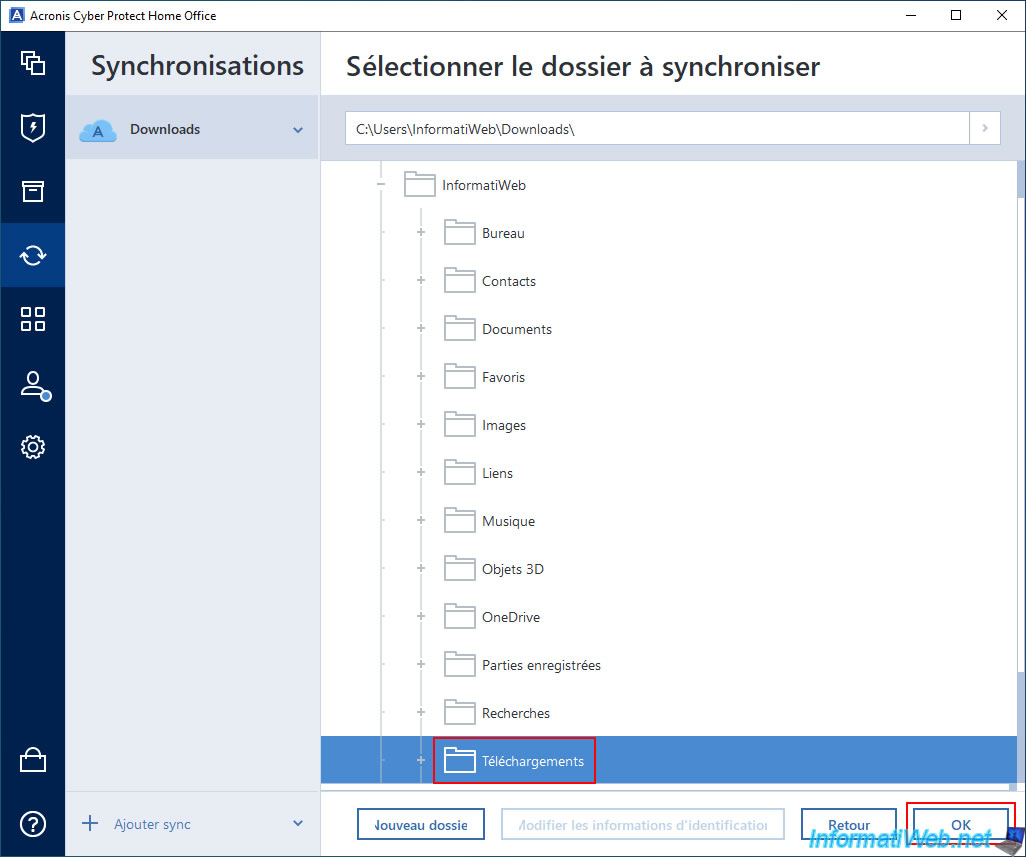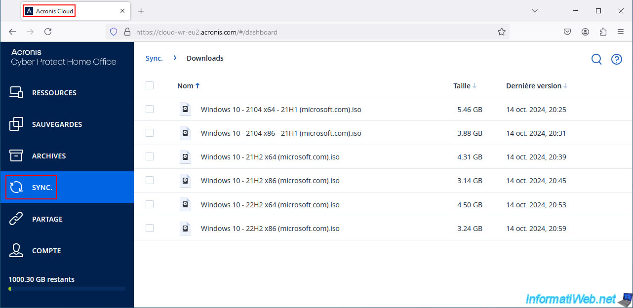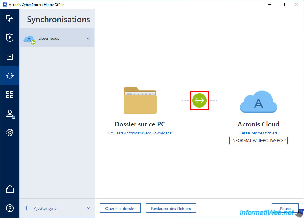 Comme vous pouvez le voir, il s'agit d'un dossier synchronisé vers Acronis Cloud depuis notre 1er PC (nommé "INFORMATIWEB-PC").