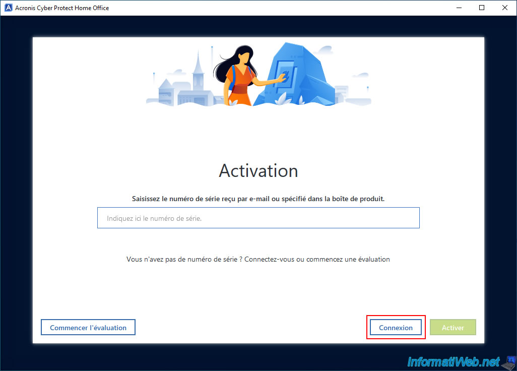 Donc, sur le second PC, cliquez sur le bouton "Connexion" lors du 1er démarrage du programme Acronis Cyber Protect Home Office (True Image).