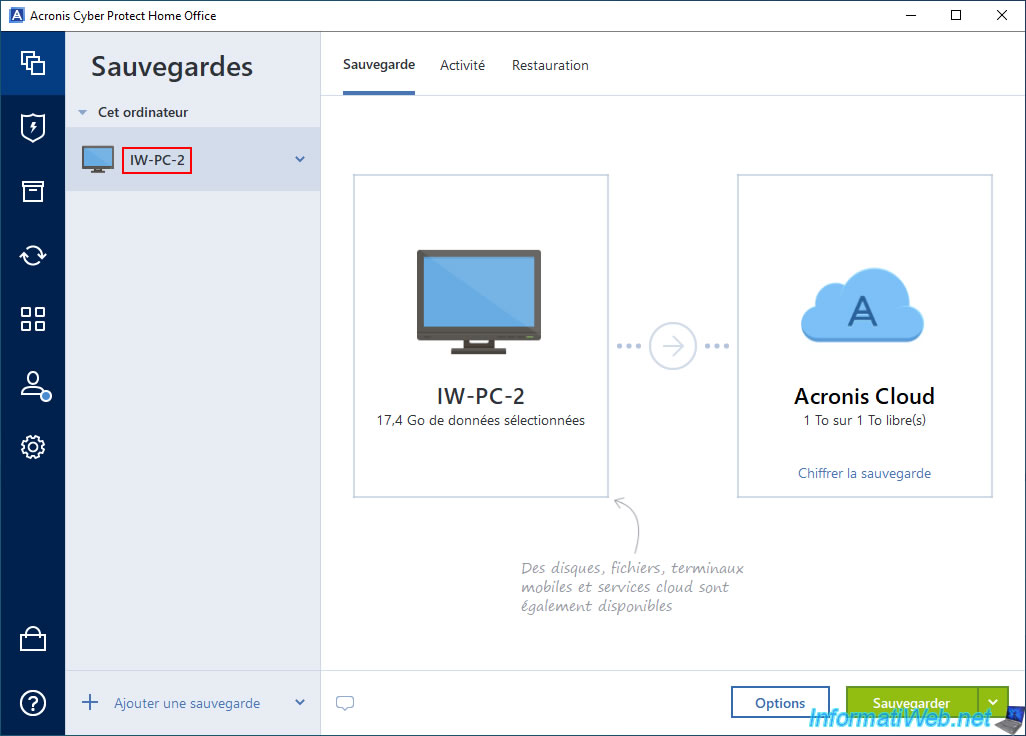 Attention : ceci nécessite un abonnement à Acronis Cloud (qui n'est pas forcément inclus avec votre licence Acronis).