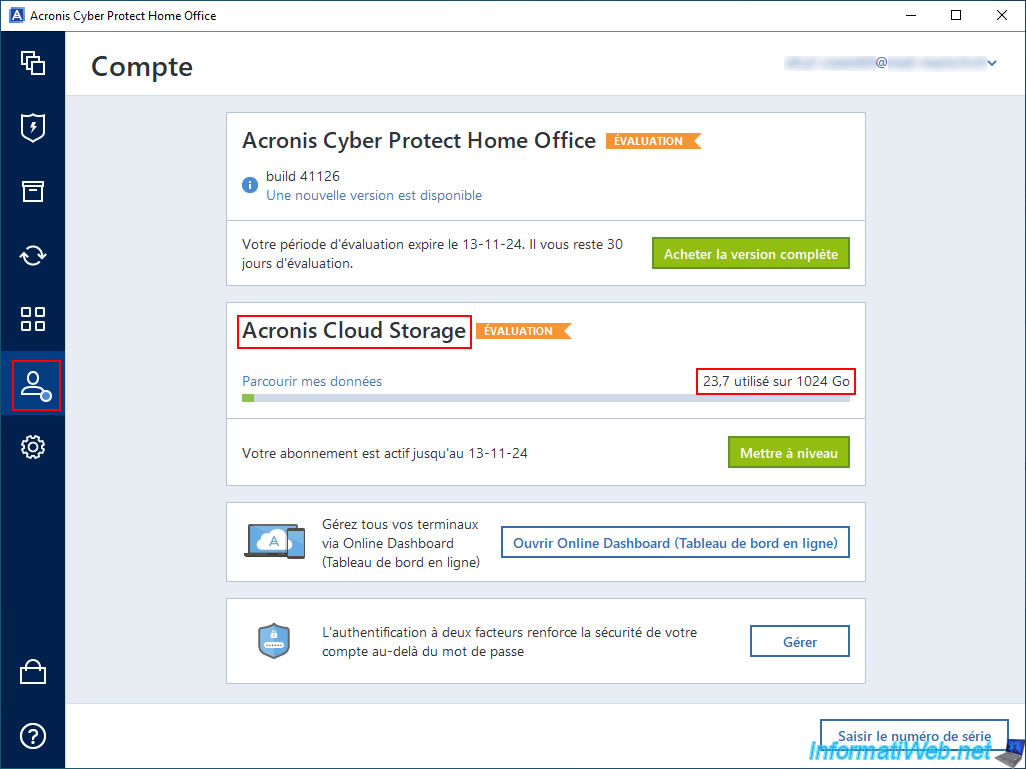 Si vous souhaitez tester cette fonctionnalité, sachez qu'il est facilement possible d'activer l'essai d'un mois à Acronis Cloud sans engagement via la partie "Compte" d'Acronis Cyber Protect Home Office (True Image).