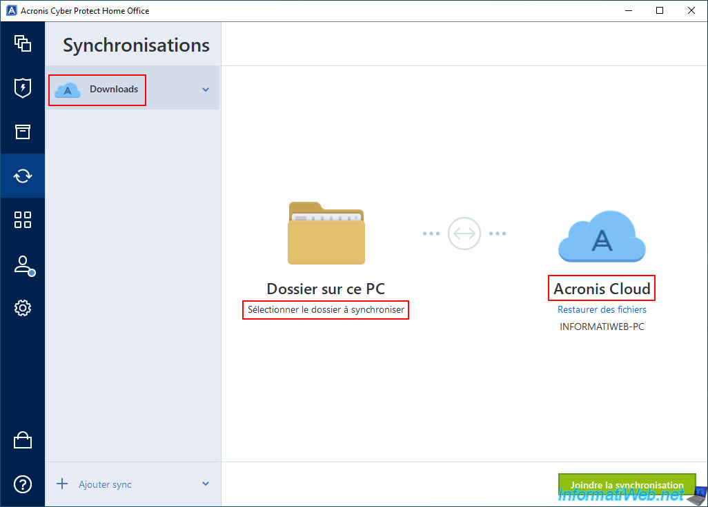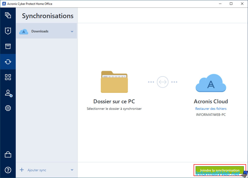Note : si le bouton "Joindre la synchronisation" n'apparait pas dans votre cas, c'est que vous n'êtes pas connecté avec le même compte Acronis sur vos 2 ordinateurs.