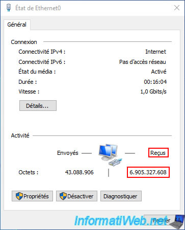 Pour vous rendre compte que des données sont en cours de téléchargement en arrière-plan par Acronis Cyber Protect Home Office (True Image), le plus simple est de faire un double clic sur votre carte réseau.