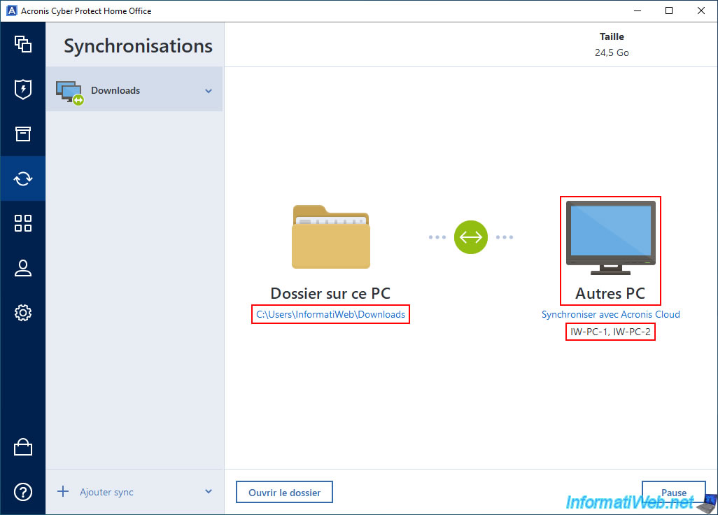 Dans notre cas, nous avons déjà synchronisé le contenu d'un dossier présent sur nos 2 ordinateurs (IW-PC-1 et IW-PC-2).