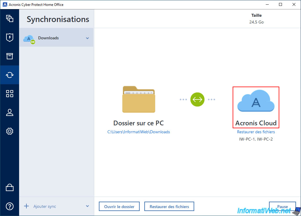 Maintenant, Acronis Cyber Protect Home Office (True Image) utilisera donc exclusivement Acronis Cloud pour synchroniser les fichiers du dossier souhaité entre vos différents ordinateurs.