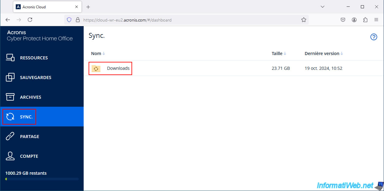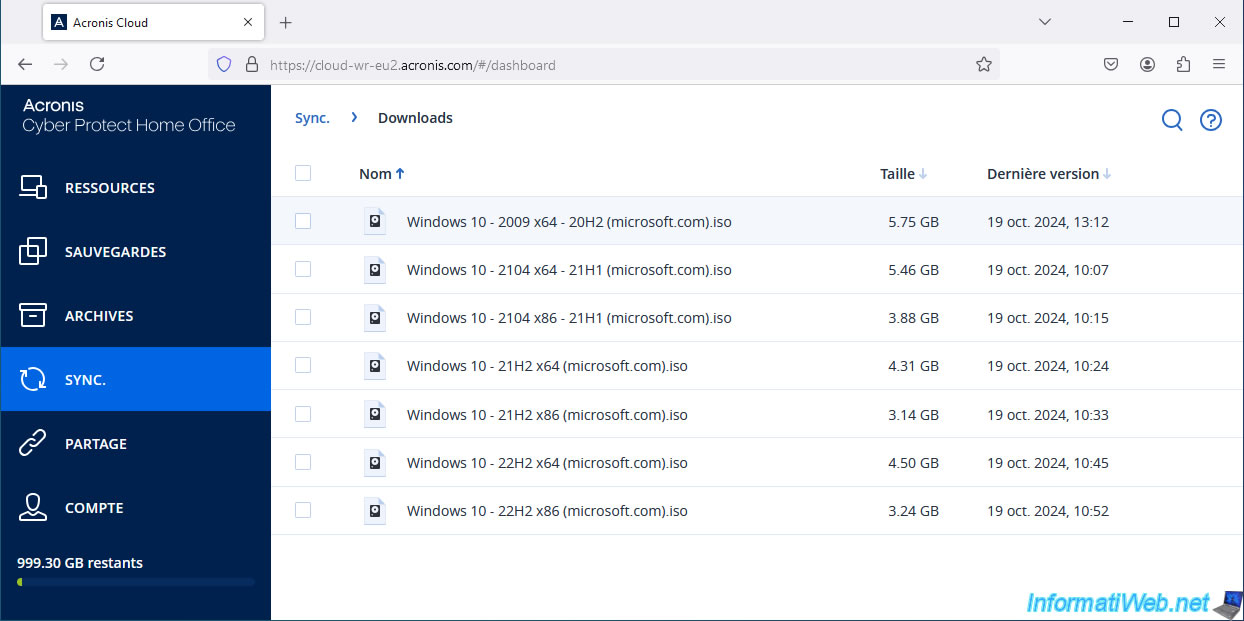 Maintenant que le fichier ajouté sur notre 1er PC a été synchronisé automatiquement vers Acronis Cloud par Acronis Cyber Protect Home Office (True Image), il vous suffit d'attendre un peu.