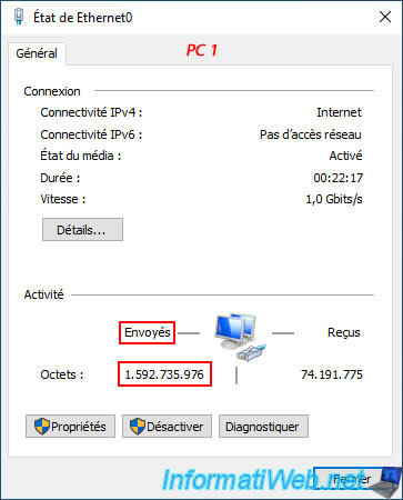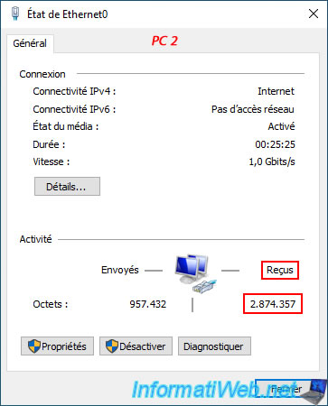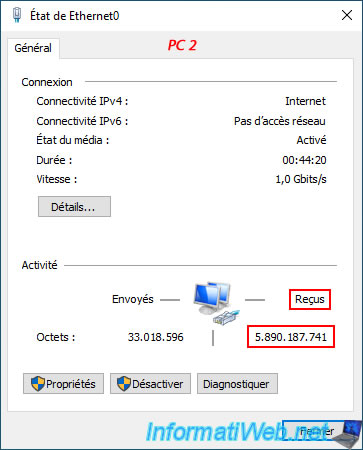 Vous pourrez d'ailleurs constater dans les propriétés de votre carte réseau que la quantité de données reçues augmente rapidement.