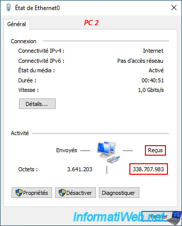 La quantité de données reçues augmente rapidement sur ce 2ème PC.