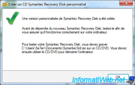 Sélectionnez le dossier contenant les fichiers de "Symantec Recovery Disk" en cliquant sur "Parcourir".