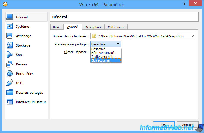 Depuis la version 7 de VirtualBox, de nouvelles options ont apparues :