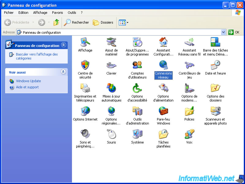Sous Windows XP, allez dans le menu démarrer --> Panneau de configuration.